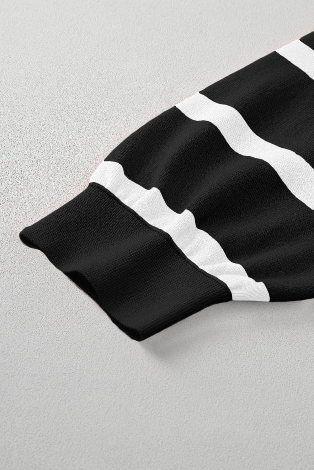 Kandy Light Beige Striped Colorblock Drop Shoulder Sweater